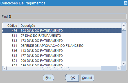 Código: Informar o código da condição de pagamento ou pressionar [F9] e selecionar a opção;