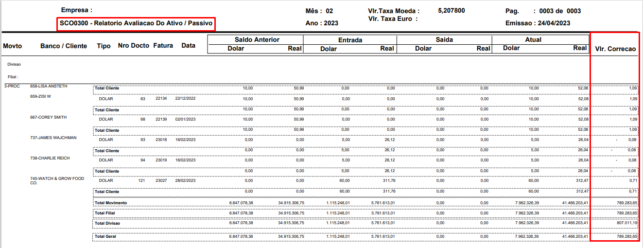 Exemplo, SCM0300 RELATORIO AVALIAÇAO DO ATIVO/ PASSIVO.