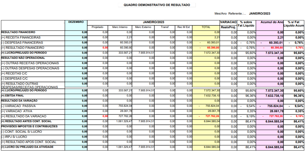 ATENÇAO: No final exercício, após Lote Zeramento do mês Dezembro, transferir com data de 31/12/ano, o saldo das contas de resultado do exercício para a conta de Resultado Acumulado: