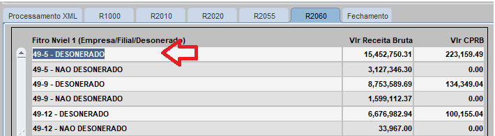 R2060 - CONTRIBUIÇÃO PREVIDENCIÁRIA SOBRE A RECEITA BRUTA (CPRB)