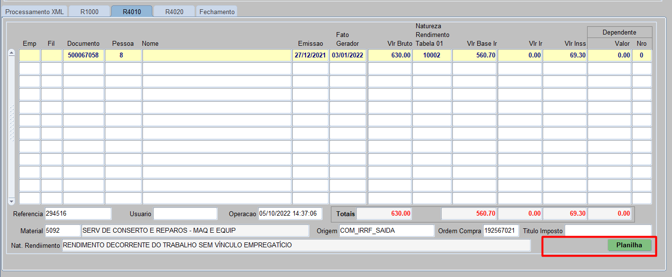 O sistema tem três regras para gerar essa informação, muito parecido com o R4010, mas é considerado para pessoa Jurídica e acréscimo de outros impostos.