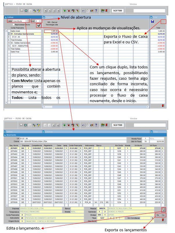 Em seguida é possível criar o cenário para o Fluxo de Caixa na tela SGF7500, para visualizar e gerar o relatório, seja ele do mais simples ao mais detalhado.