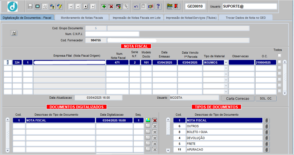 •Acessar a tela GED0010 e anexar a nota fiscal;