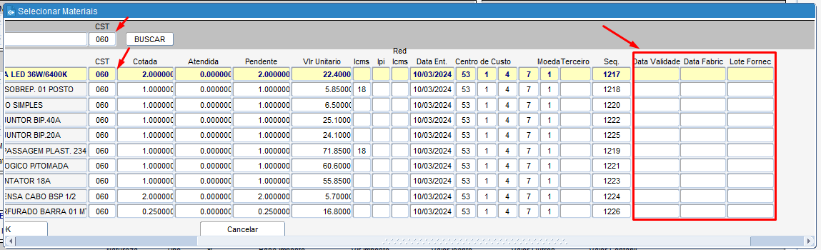 DATA VALIDADE: Informe a data de validade do item e pressionar [ENTER];