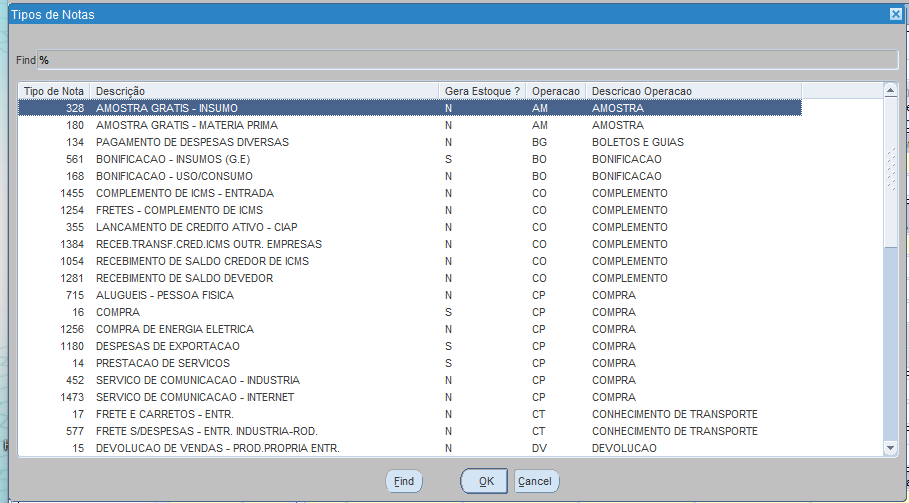 TIPO NOTA – F9: informar o código, ou pressionar [F9], selecionar o tipo, e pressionar [ENTER];