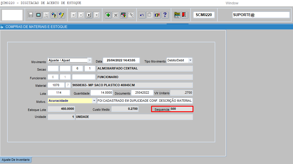 SCM0220 - DIGITAÇÃO DE ACERTO ESTOQUE