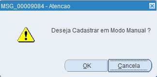 SGE2200 - 0008 Caso o usuário não informar o número do documento, o sistema questionará se deseja continuar com o cadastro de modo manual.