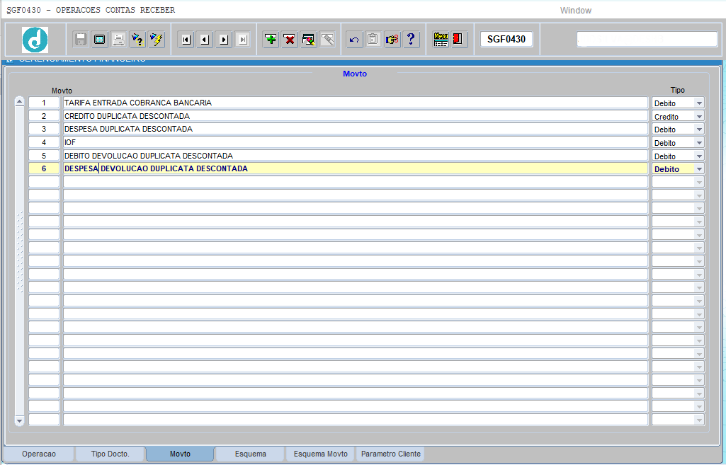 2.2Aba Tipo Docto.: Consultar os tipos de duplicatas cadastradas;