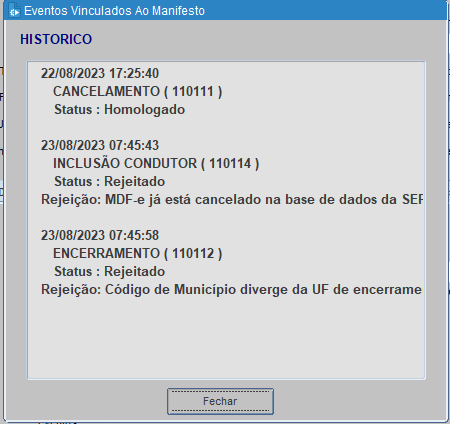 No caso de precisar emitir um manifesto para o mesmo veículo e mesmo estado, o primeiro manifesto deve estar com status encerrado para que o sistema libere gerar um novo manifesto neste caso.